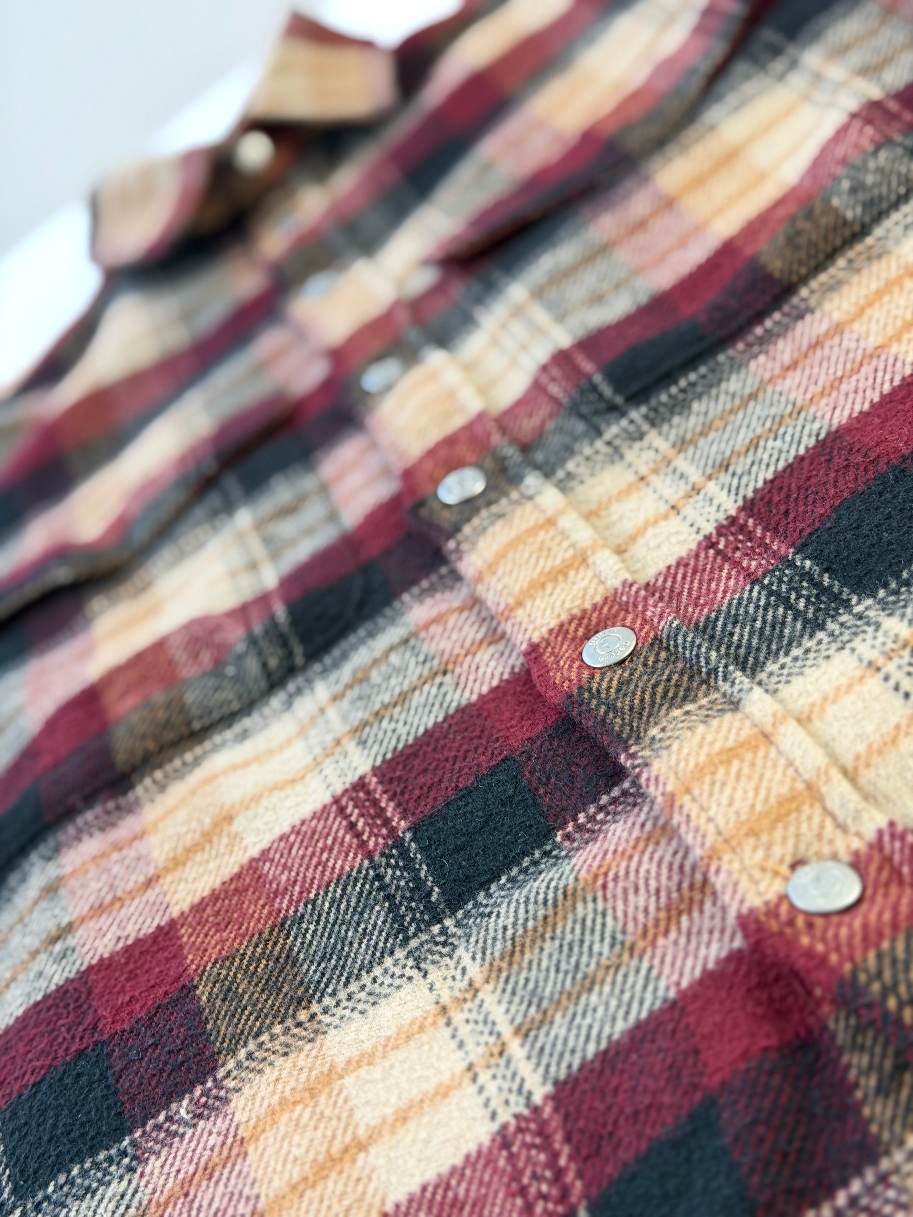 Pierre Cardin Überhemd Herren Langarm kariert rot schwarz beige - M